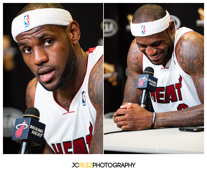 In my continuing quest to get credentialed to photograph the Miami Heat games, the Sports Brothers, sports radio hosts and bloggers for all of South Florida sports, got me access to the Miami Heat Media day where the Heat players and coaches meet with the media to discuss the upcoming season. Sure I’m a Celtics fan and their rival is the Miami Heat but to get the chance to photograph the players at the Miami Heat Media day was too good to pass up so I had to put my Celtic pride aside and mingle with the Heat players and photograph them as they gave interviews. Such a tough life I know.