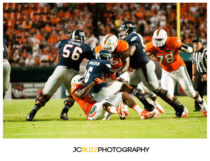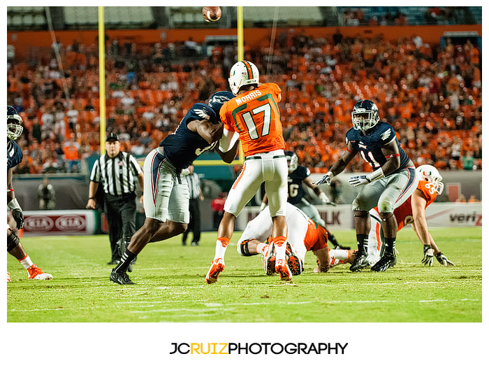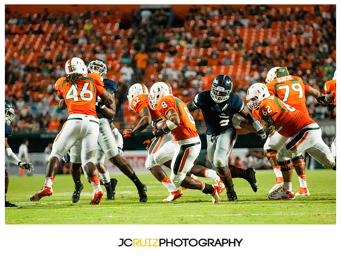 Another football season is upon and how glorious it is. Thanks to the Sports Brothers I have another opportunity to photograph the Miami Hurricanes Football games this year at Sunlife Stadium. I’m excited to photograph the Miami Hurricanes this year not because I’ve a huge fan, ok that is a big reason, but because I have the opportunity to photograph some amazing athletes playing the great sport of football.