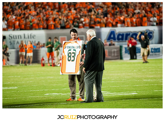 The UM football program opened up its season against the FAU Owls. This night was also to celebrate the 30th anniversary of the Miami Hurricanes’ first national championship under then coach, Howard Schnellenberger. So I already knew it was going to be an awesome night.