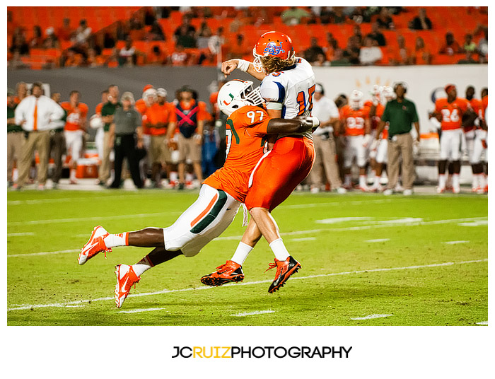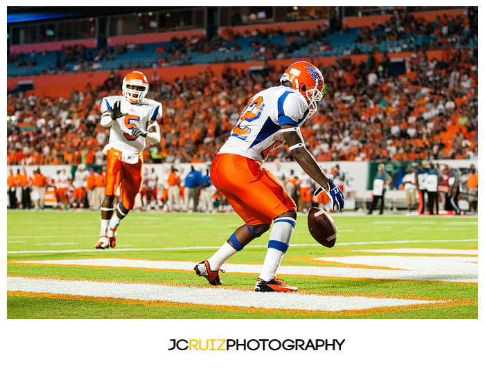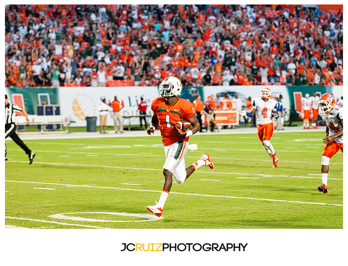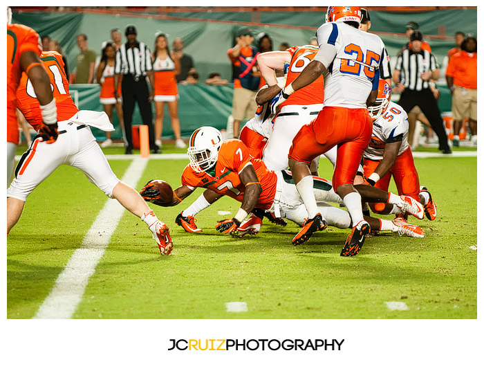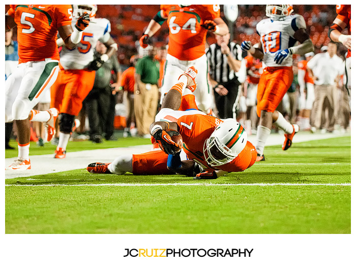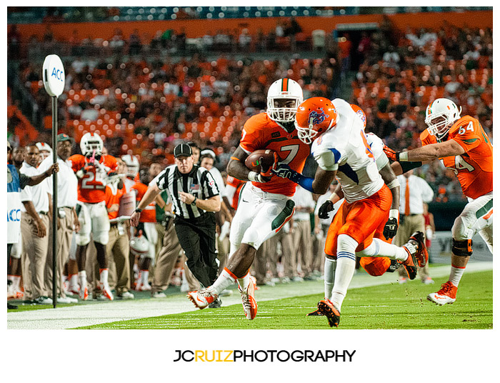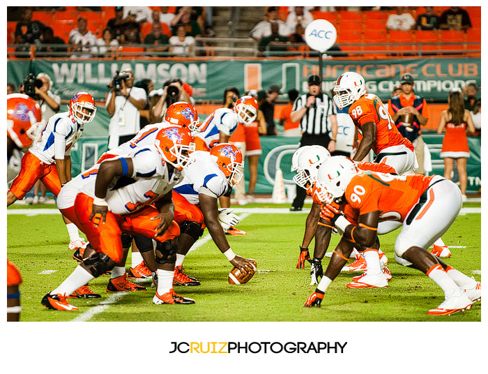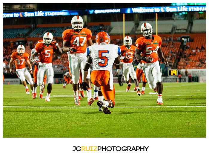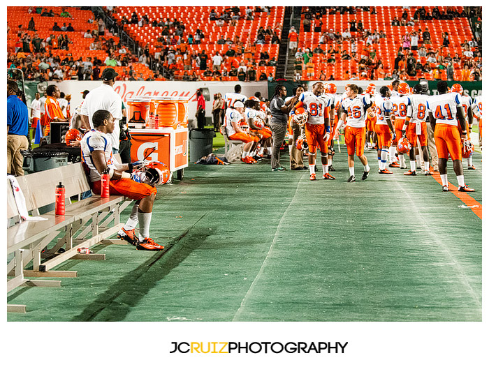The game was unmerciful. The University of Miami had 49 points at half time while Savannah State struggled to maintain their zero points. I would cringe behind my camera as I watched hit after hit being put on the Savannah State players. Those kids took a beating and a lot of them did not keep on ticking.