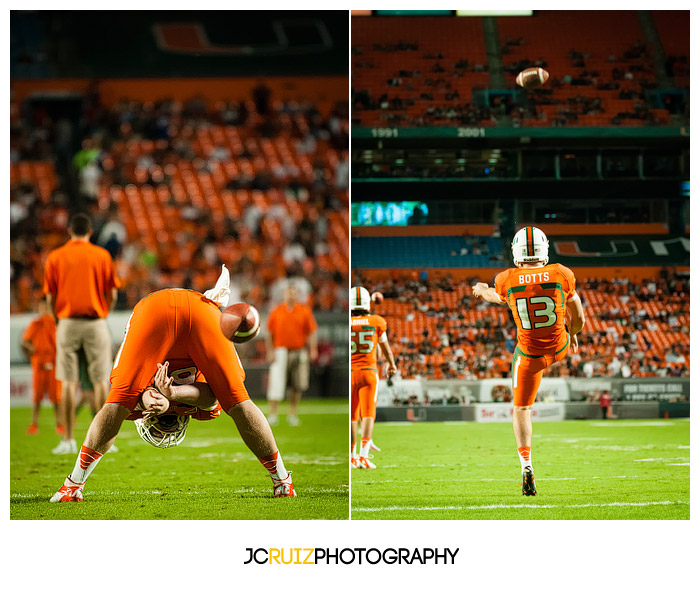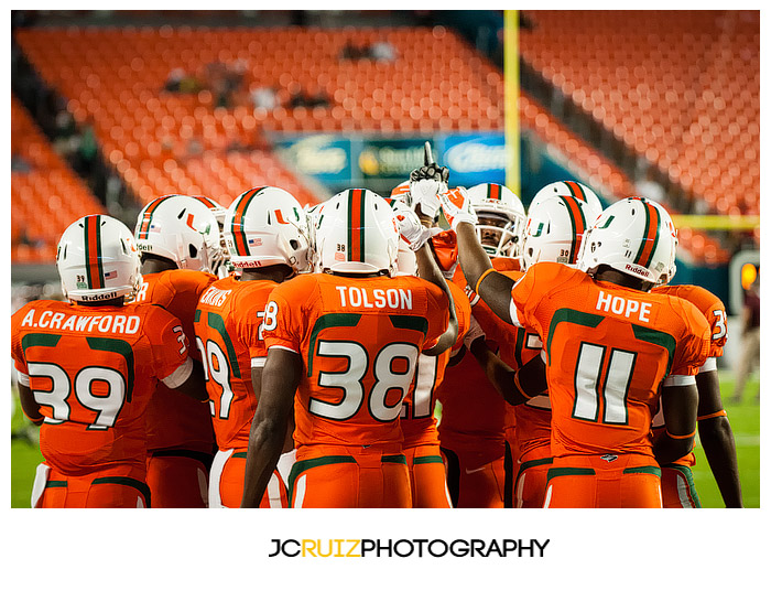 My last experience with shooting at sports only two weeks ago at the UM vs. FSU game gave me great insight into how to shoot this game settings wise. What I did not expect was for the stadium lighting to be dimmer than the previous game. Thankfully I always get onto the field an hour before kickoff to catch warm ups and get my settings locked in. What I like about shooting under the lights is that my settings will pretty much remain constant unlike games in the day where I have to be mindful of the sun being out or clouds blocking the sun.
