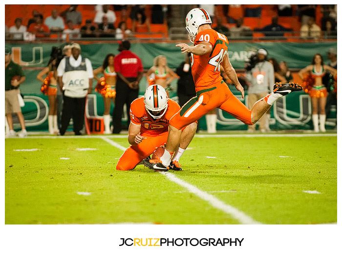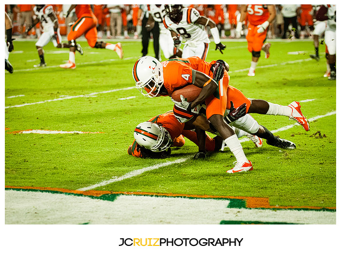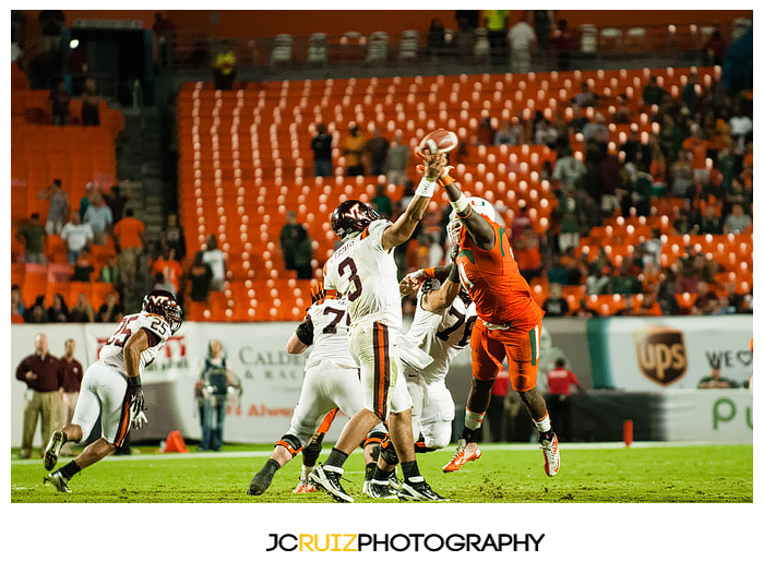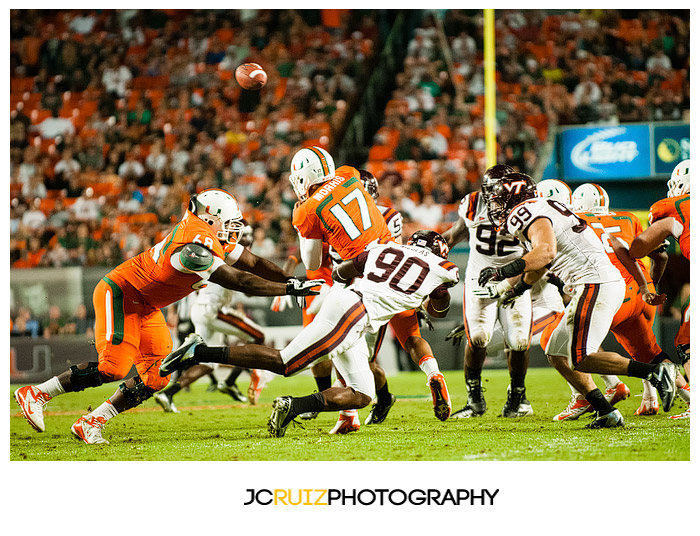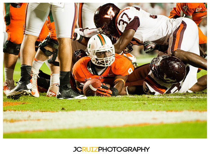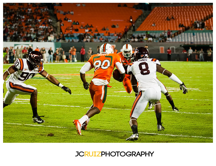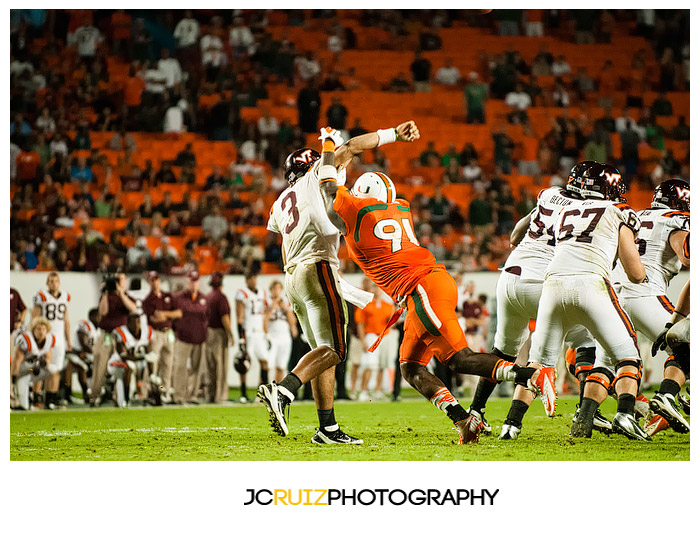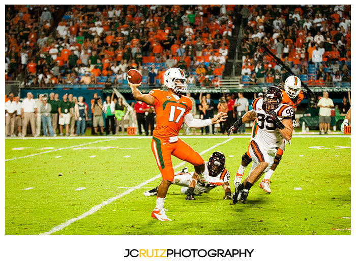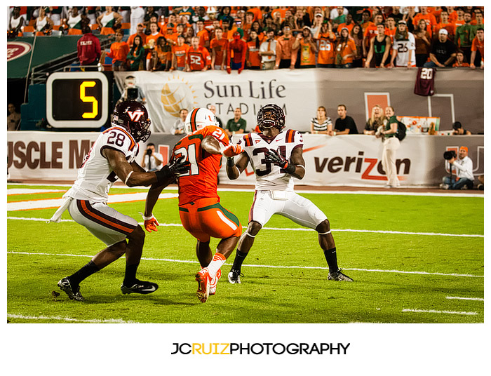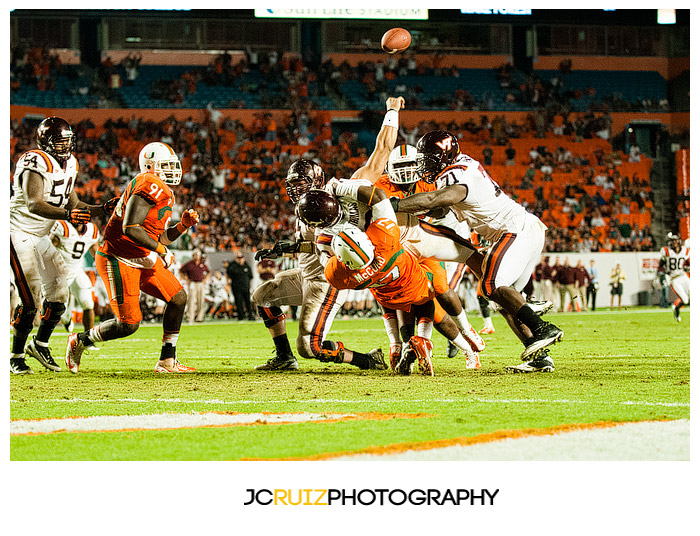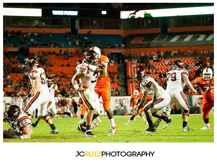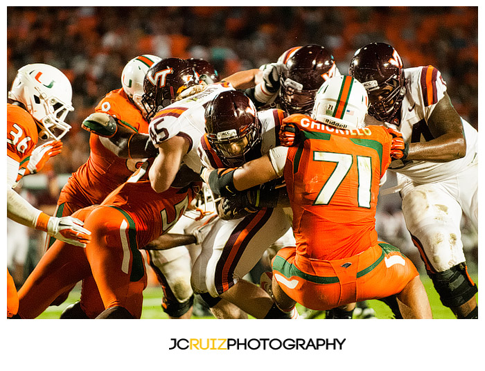 I won’t lie, I’m really enjoying photographing these UM games. This week’s game was UM vs. Virginia Tech. Two teams that always play hard against each other and also a vital game in the ACC standings. What made it even better was that it was a night game and the temps were in the high ’60s.