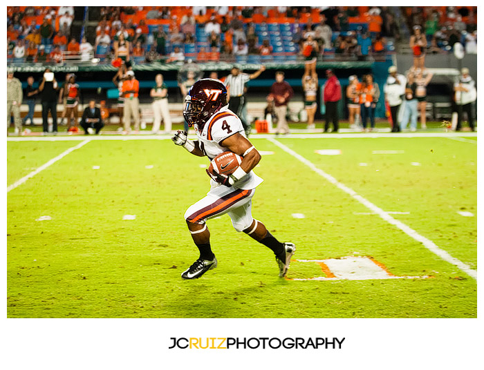 The game was moving pretty quick in the first half. I had mostly shots of Virginia Tech because they had possession of the football longer than UM. I won’t lie, I thought I was covering the game for Virginia Tech because my photos were all of them. Luckily in the second half I was able to grab more UM photos.